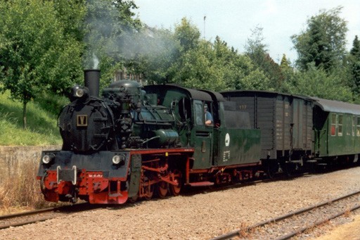 Dampfzug im Bahnhof Oberzissen (1.7.2001)