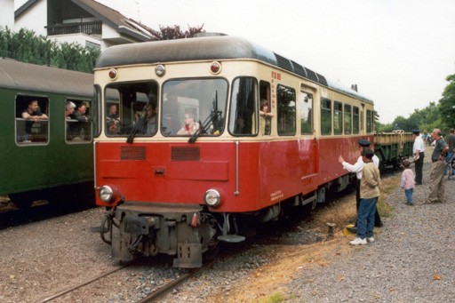 Triebwagen rangiert im Bahnhof Oberzissen (1.7.2001)